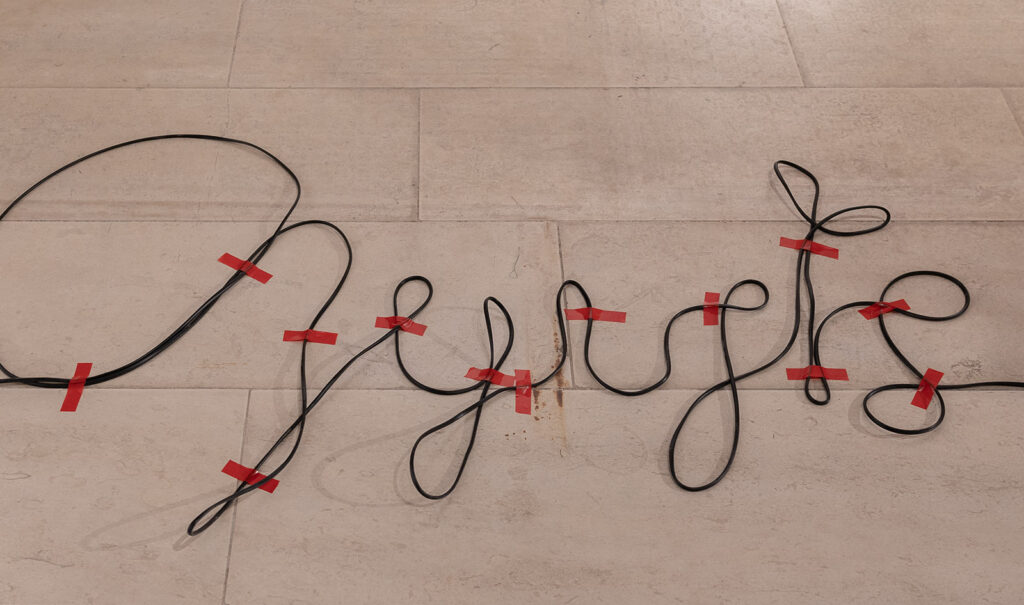 The electrical wire is the conduit for this energy, but also a symbolic cord between us and the planet – a cord of morality and responsibility, long and tangled.